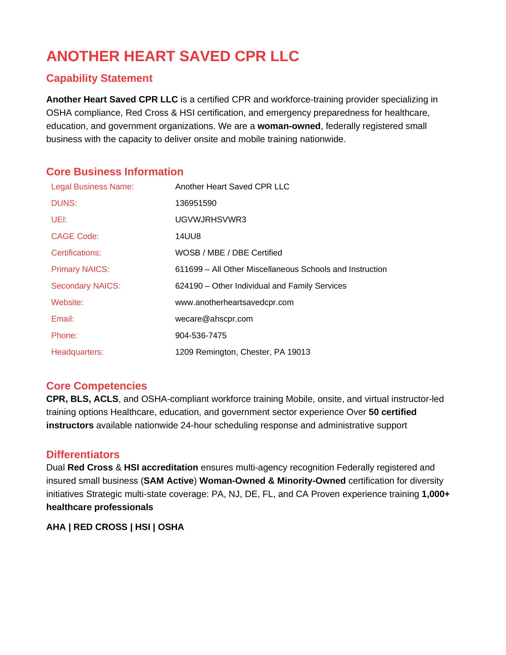Trusted CPR, OSHA, & Workforce Training Partner for Federal, State, and Local Contracts